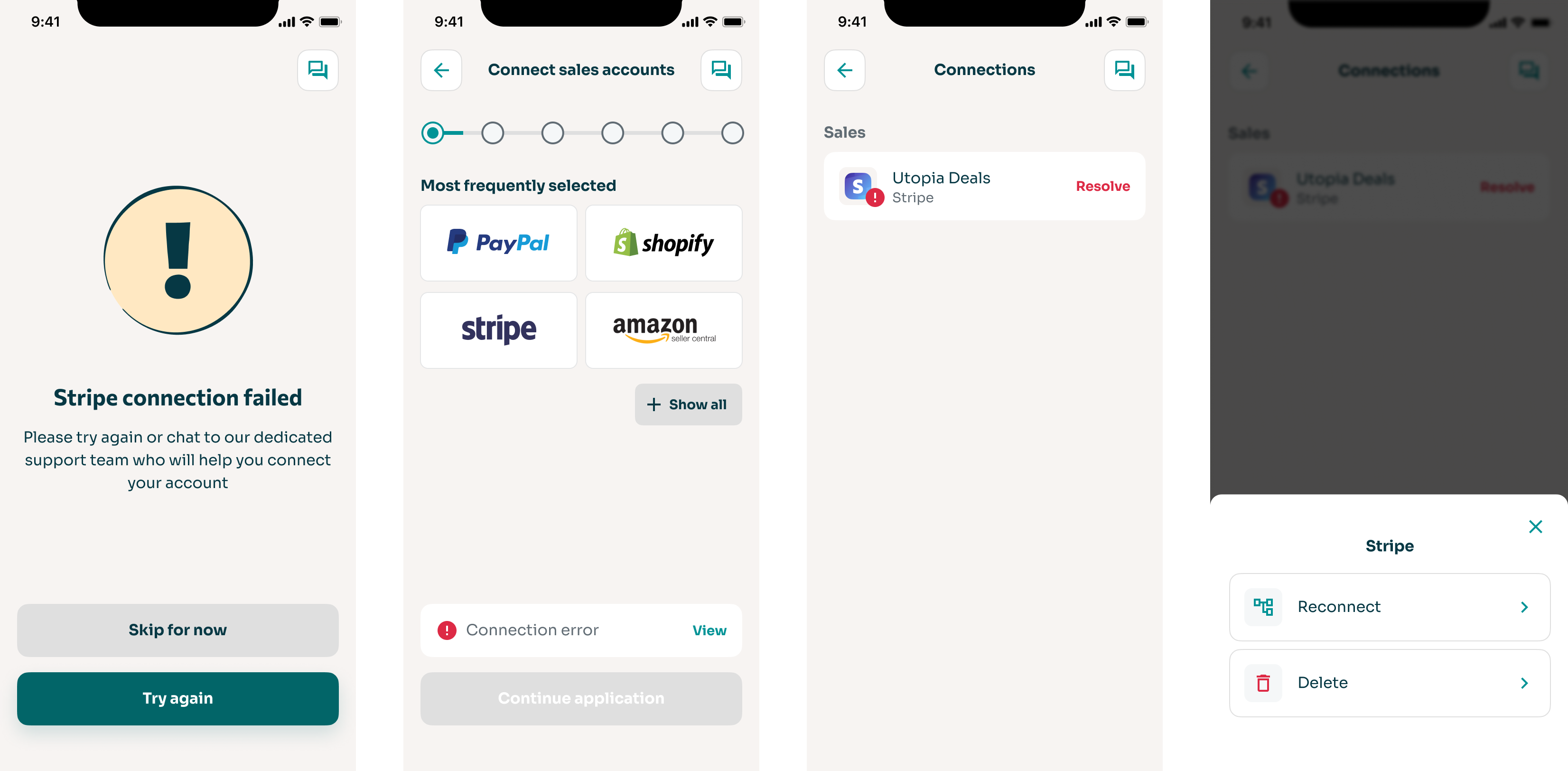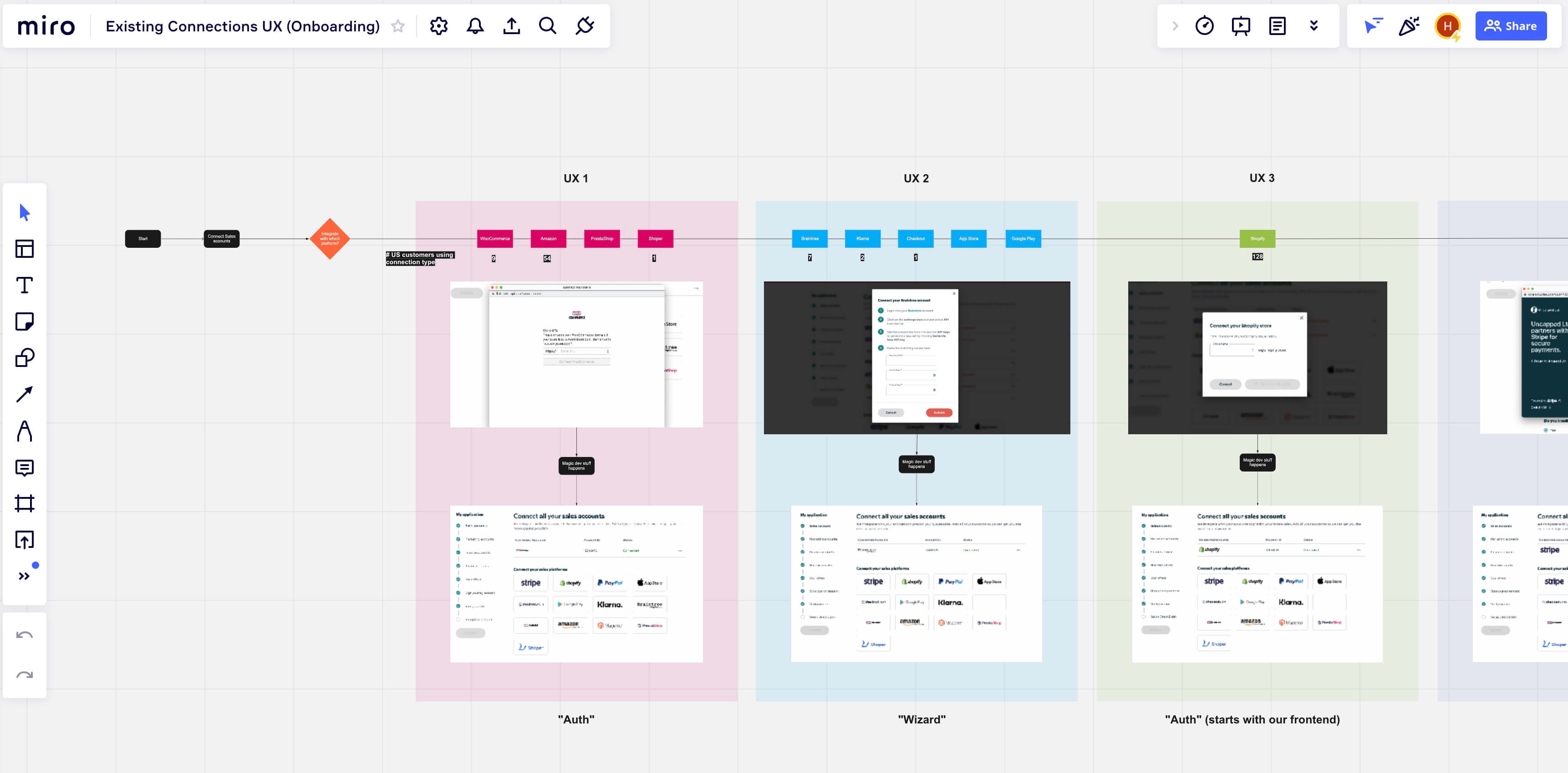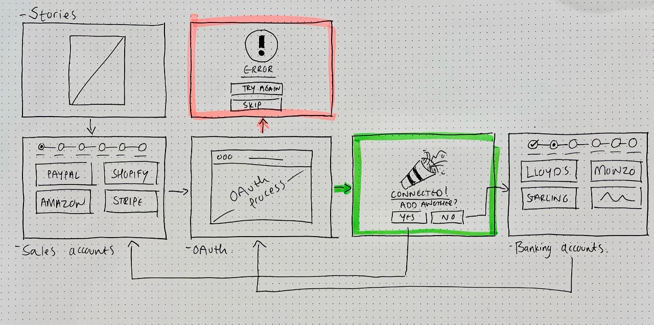 The flow was designed to guide users through the connections that were less error-prone first in order to encourage momentum.
