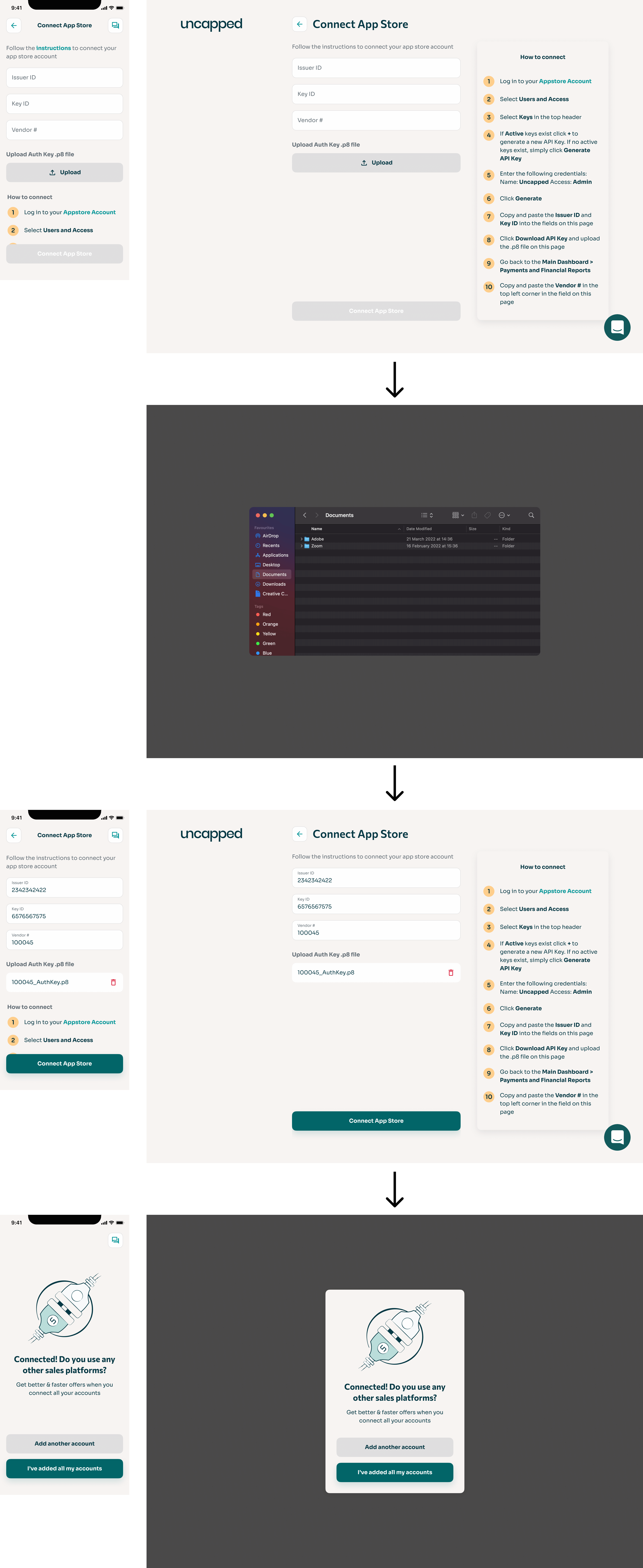 Customers can see which accounts are connected and which documents are uploaded at all points during onboarding.
