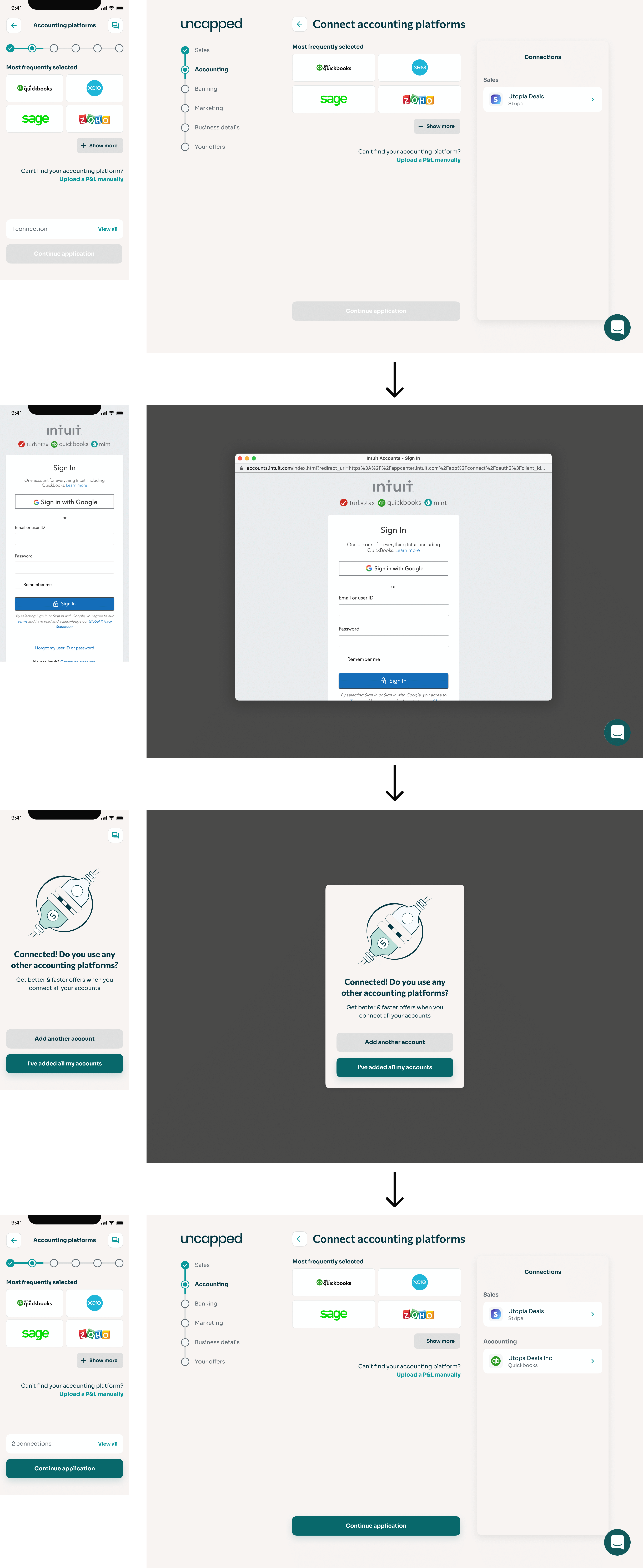 To qualify for funding, customers connect their sales, accounting, banking, and marketing platforms. This data allows the underwriting team to assess eligibility and risk. In early 2022, my team was tasked with redesigning Uncapped’s legacy connections experience.